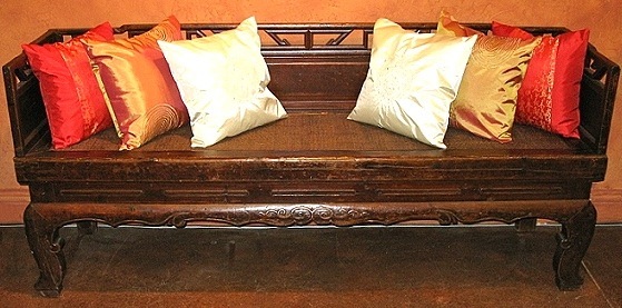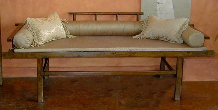Elegant elm wood and bamboo summer bed, with silk cushions included.