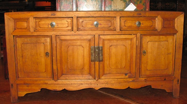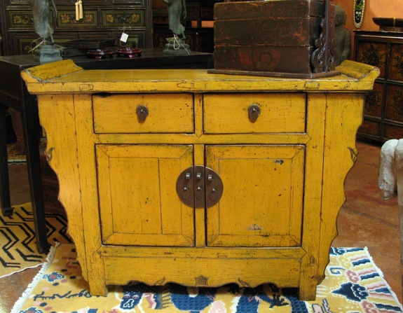 This Chinese antique is a four door Kang table circa 1900-1920′s, Shandong Chinese province. This original, poplar cabinet has been given an updated look by removal of the original finish.