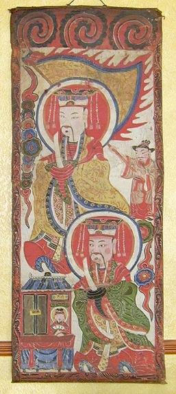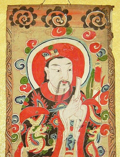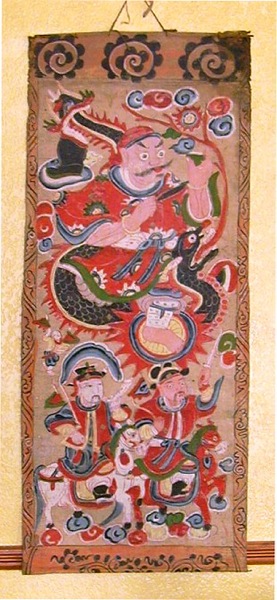Yao ceremonial painting circa 1880-1920 used by the Chinese Minority Yao (Mein) people in their temple ceremonies. These paintings are believed to take on the spirit of the gods and demi-gods depicted and must undergo a 'cleansing' ritual before being decommissioned for secular use.