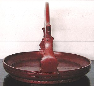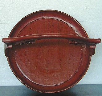 Handcarved lacquer serving tray late 19th-early 20th century China. Lacquer over wood; 16" high x 12" round.