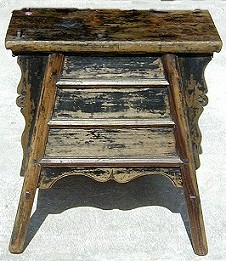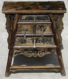 An 18th century barber stool from Hebei Province, PRC. This barber plied his trade on the streets and carried his tools in the drawers; willow or pillop wood; 24" high x 23" wide x 13" deep.